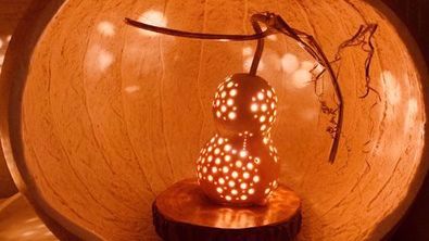 The process involves hollowing and carving the gourd, then adding light to create patterns on its surface. What makes this activity unique is the way natural materials are combined with design, producing lamps that are both practical and artistic.